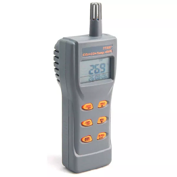 - اندازهگیری همزمان CO و CO₂ همراه با دما و رطوبت محیط