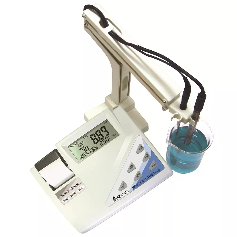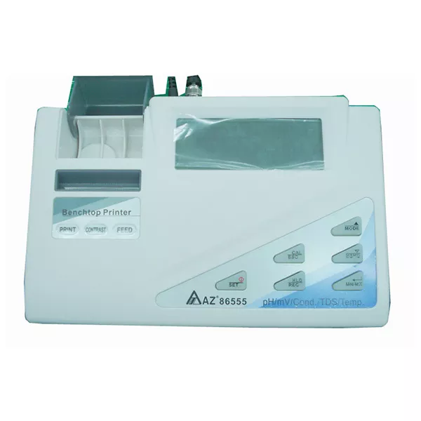 مولتی‌پارامتر AZ 86555 یک تستر چندکاره دقیق و پیشرفته برای اندازه‌گیری همزمان pH، هدایت الکتریکی (EC)، کل مواد محلول (TDSشوری (Salinity) و دمای محلول است. این دستگاه علاوه بر عملکرد آزمایشگاهی دقیق، دارای پرینتر حرارتی داخلی می‌باشد که امکان چاپ فوری نتایج اندازه‌گیری را فراهم می‌کند. طراحی حرفه‌ای، منوی ساده و بدنه مقاوم باعث شده AZ 86555 انتخابی ایده‌آل برای آزمایشگاه‌ها، صنایع غذایی، تصفیه آب، کشاورزی و مراکز تحقیقاتی باشد. با قابلیت ثبت و چاپ داده‌ها، این دستگاه گزینه‌ای بی‌رقیب برای کنترل و مستندسازی کیفیت آب است.