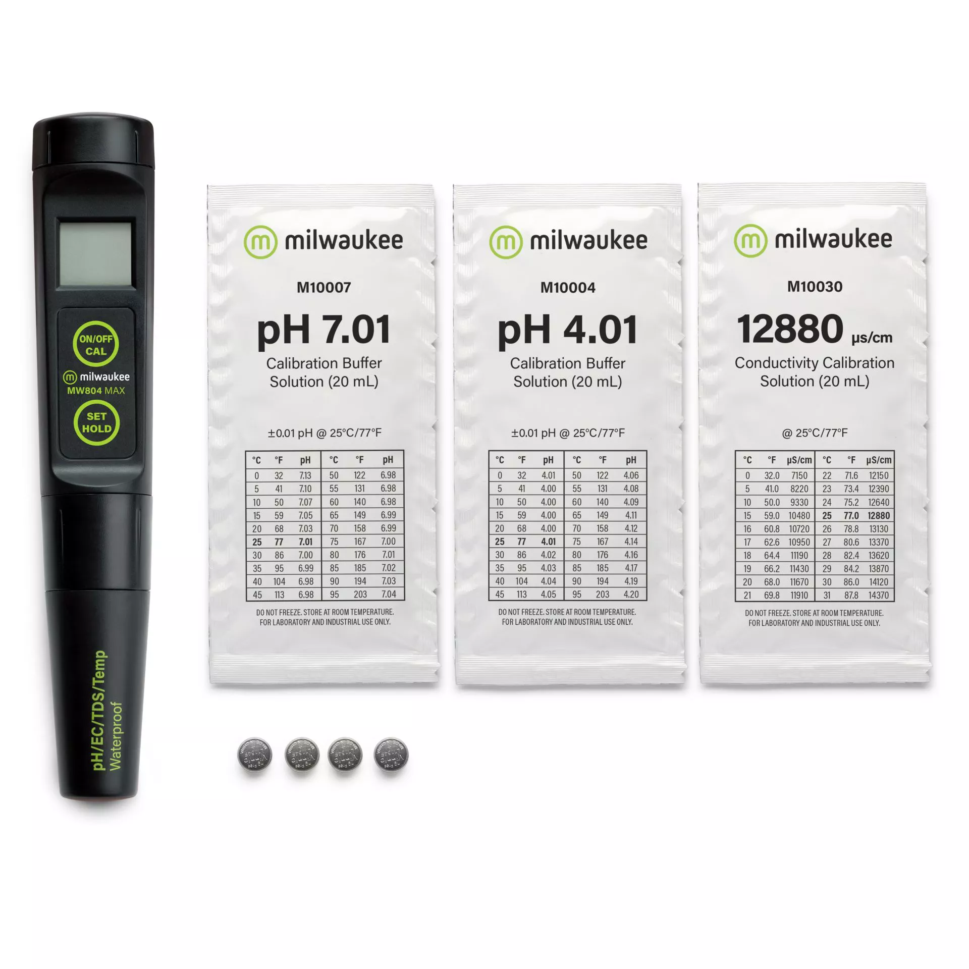 مولتی پارامتر میلواکی MW804 MAX PH,EC,TDS با قابلیت اندازه گیری پارامترهای PH در بازه اندازه گیری 0.00 – 14.00 با وضوح نمایشی یک صدم اعشار. دقت اندازه گیری پی اچ در حد 0.05 PH . اندازه گیری کنداکتیویته EC در بازه 0.00 – 20.00 mS . با وضوح نمایشی 0.01 یک صدم میلی زیمنس و دقت اندازه گیری 2% . اندازه گیری سختی یا TDS (TOTAL DISSOLVED SOLIDS) در بازه 0.00 تا 10.00 PPT . با وضوح نمایشی 0.01 یک صدم گرم بر لیتر. و دقت اندازه گیری 2% از ویژگی های اندازه گیری این محصول می باشد.